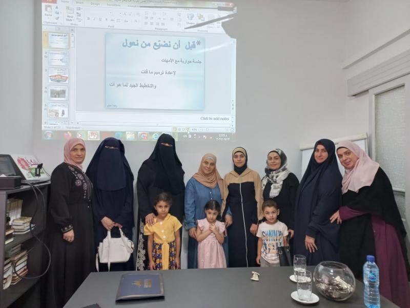 أقامت اللّجنة النّسائية "زاد" التابعة لجمعية الإمام الشّاطبي لتحفيظ القرآن الكريم ونشر علومه صباح الثلاثاء 12/9/2022م جلسة حوارية هادفة ونافعة للأمهات تحت عنوان: "قبل أن نضيع من نعول" وذلك في مركز نوره عبد الله الفدا.